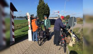 Een gids stapte mee de bus in voor een rondrit door het grensgebied. De tocht voerde over soms zeer smalle weggetjes. De stuurmanskunst van chauffeur Ronald oogstte bewondering. De gids vertelde over het gebied, zoals de rechtgetrokken rivier de Berkel aan de Nederlandse kant en de meanderende Berkel aan Duitse kant. Over de 30 windmolens van 180 meter hoogte aan Duitse kant en nul windmolens aan Nederlandse kant. Over de velden olifantengras, gebruikt om dierlijke mest te kunnen verbranden in biomassacentrales. Over de flamingo’s in het natuurgebied de Rekkense Venne. En zo meer. Daarnaast vertelde de gids leuke anekdotes over onder andere de smokkelaars, over de douaniers en kommiezen, en de destijds oudste vrouw van Nederland in Rekken.